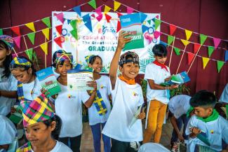 Can provide five children with a trained teacher, printed course materials and a New Testament Bible.