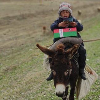 The boy took the shoebox gift, pressed it to his chest, and turned to look toward his older brother who was tending the flock a distance away. Yusif noticed his concerned glance and assured him that there was a gift for his brother, too. The boy then called to his sibling who quickly came riding toward them.